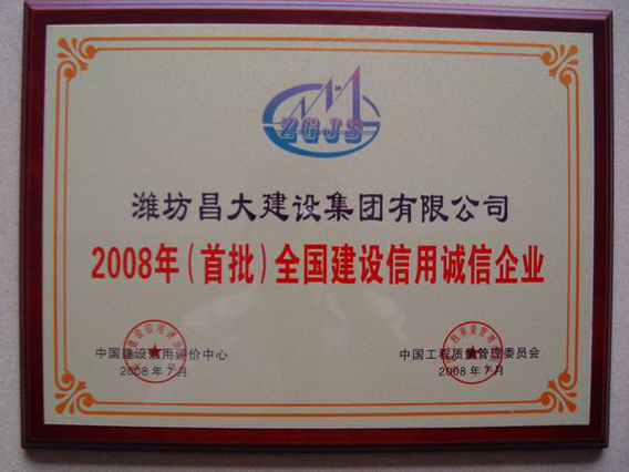 濰坊昌大建設集團被授予“2008年(首批)全國建設信用誠信企業(yè)”